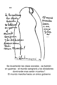 Un ojo vigila. Un ojo de experiencia. Desde las alturas, el destino rige y manda. América latina, pobre y ensombrecida, será víctima de la corriente cubana. Sangre en las calles de las capitales. Sangre en los hogares. Sangre, despotismo, miseria, hambre. El ojo dejará hacer. Los países necesitarán de experiencia. Las ideas y los ideales se harán y se enredarán. De pronto, constatarán que ambos extremos coinciden, y se aclarará la guerra, pero la guerra habrá terminado con dos tercios de la humanidad. Final del siglo en caos. Luego, pax". (BSP 1938) ------- Forest